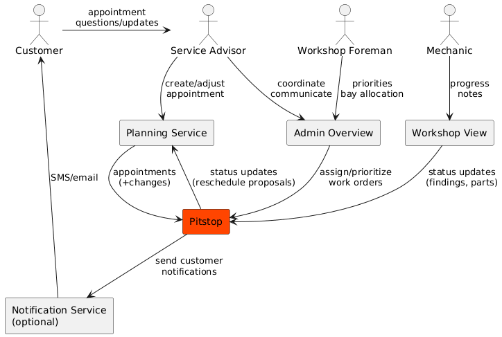 One business context diagram (or a table) listing the key actors/systems and what they exchange.