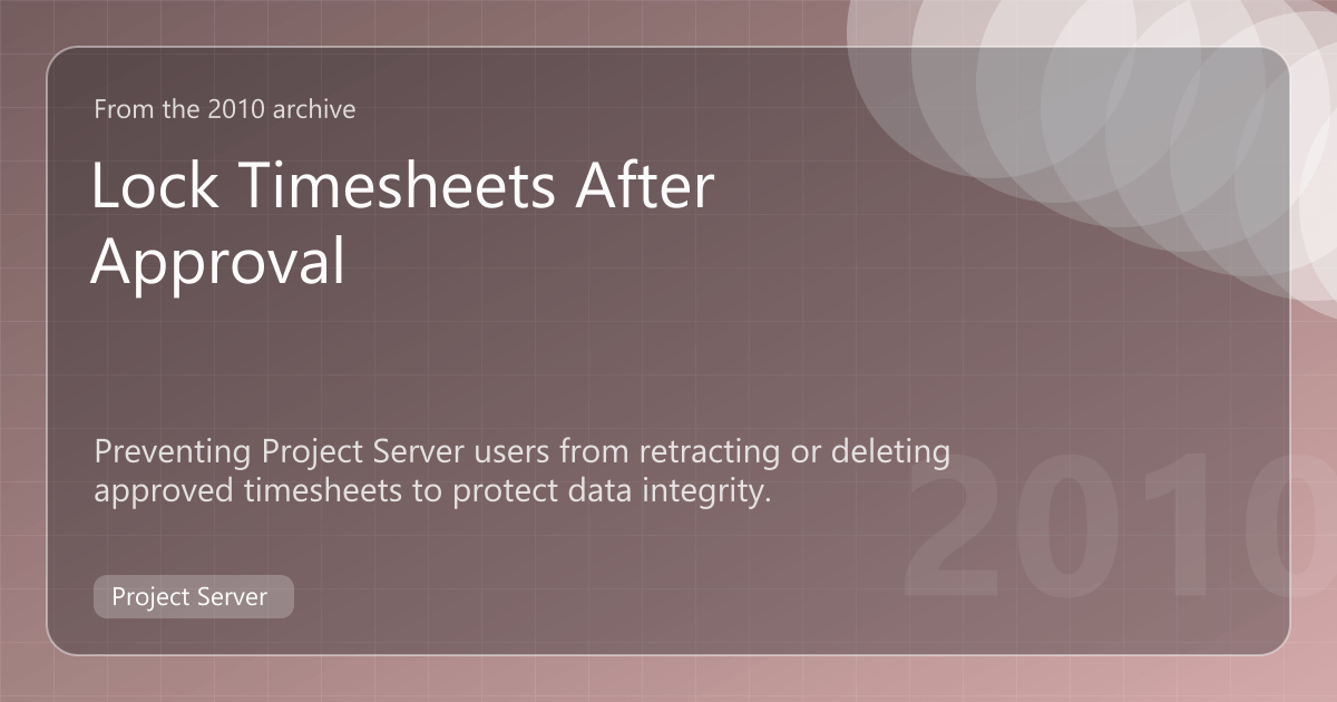 Working on a Project Server project we discovered it is quite easy to get issues with data integrity when users start retracting and deleting timesheets. After discussing the issue with Microsoft, they gave us a workaround which solves our problem.