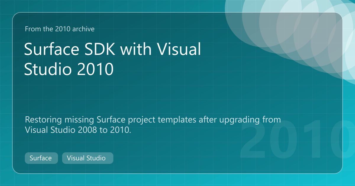 With the launch of Visual Studio 2010 this week a lot of people will start upgrading to the new version. After the installation was complete, I noticed the Surface project and item templates were not available.