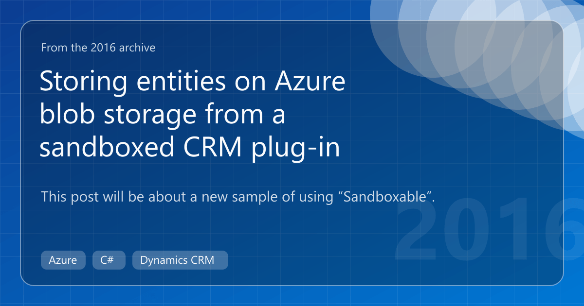 By utilizing the Sandboxable Azure SDK, we only needed a few lines of code to store deleted CRM records in Azure blob storage, making a remote archive a piece of cake.