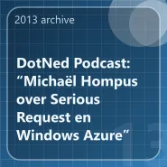 Last month I gave my session, in Dutch, titled “Serious Request, Azure als schaalbaar platform” during the dotNed Saturday event.