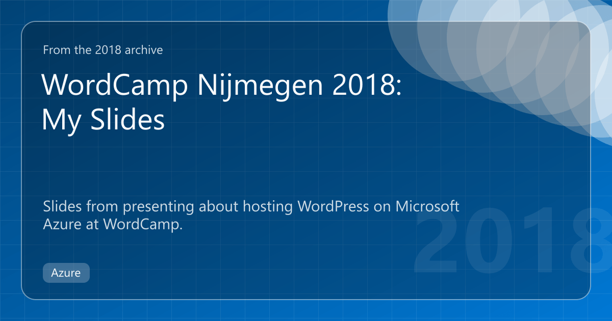 This weekend I was speaking at WordCamp Nijmegen about the possibilities of hosting a WordPress site using Microsoft Azure.