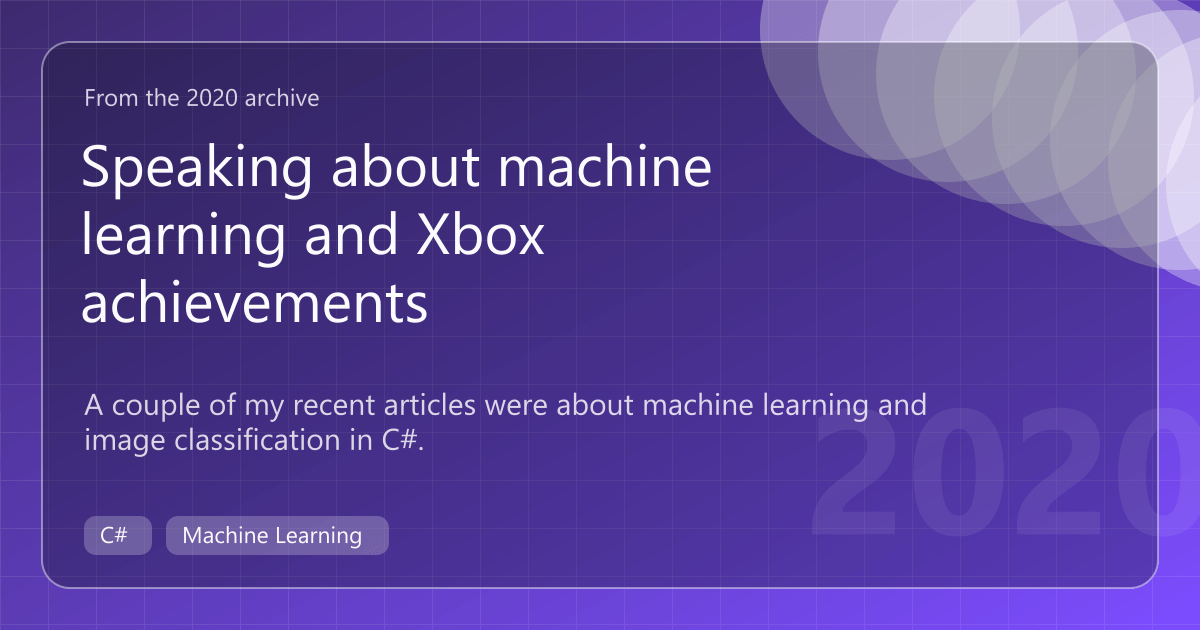A couple of my recent articles were about machine learning and image classification in C#. These posts were the results of a pet project on which I was working. I will be speaking about this project at a couple of events in the coming weeks.