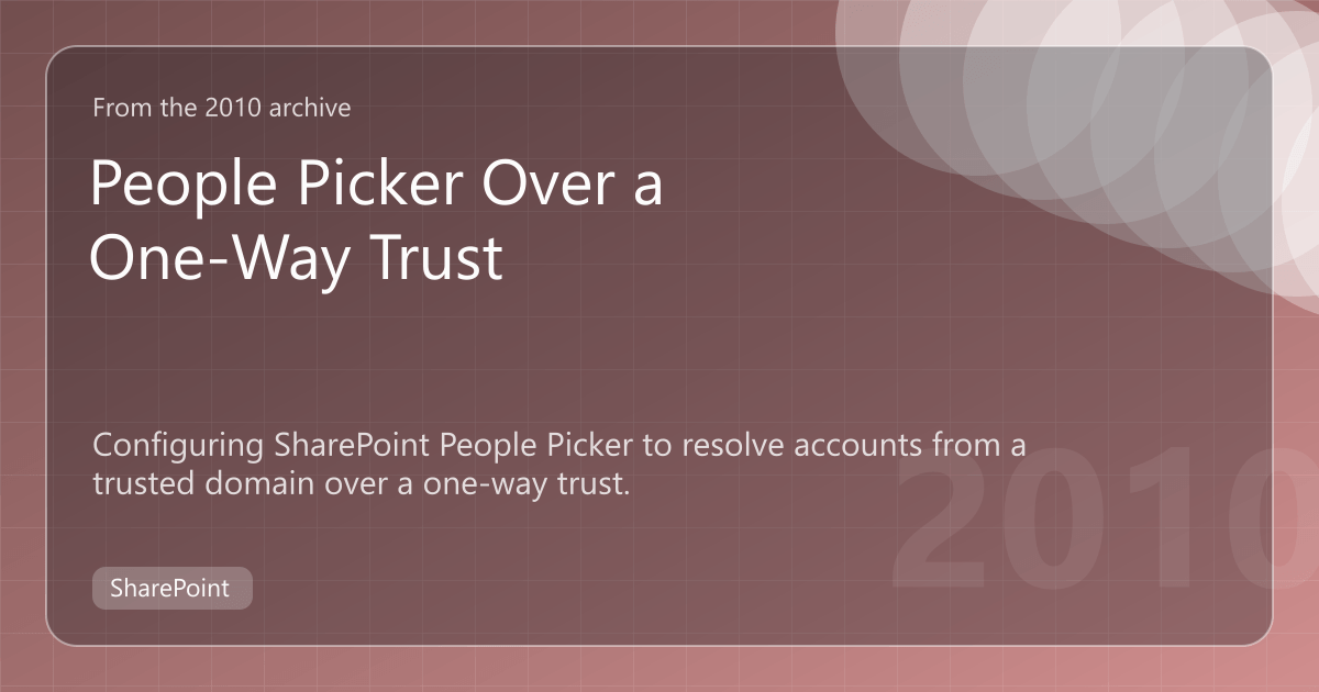 A full trust is not always desirable and there your problem begins. After setting up the one-way trust you can authenticate with an account from the trusted domain, but the SharePoint People Picker won’t show any accounts from this domain.